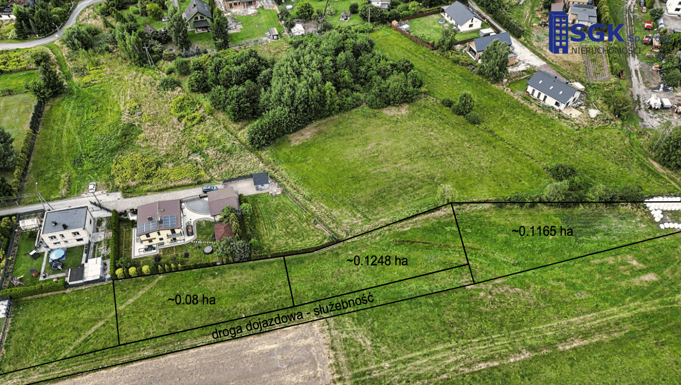 Działki są oddalone od głównej trasy komunikacyjnej Gliwice-Mikołów (5-6 linia zabudowy), teren płaski, rzuty poszczególnych nieruchomości przedstawione zostały na ostatniej fotografii. W południowej części działek wydzielono służebność przejścia i przechodu.